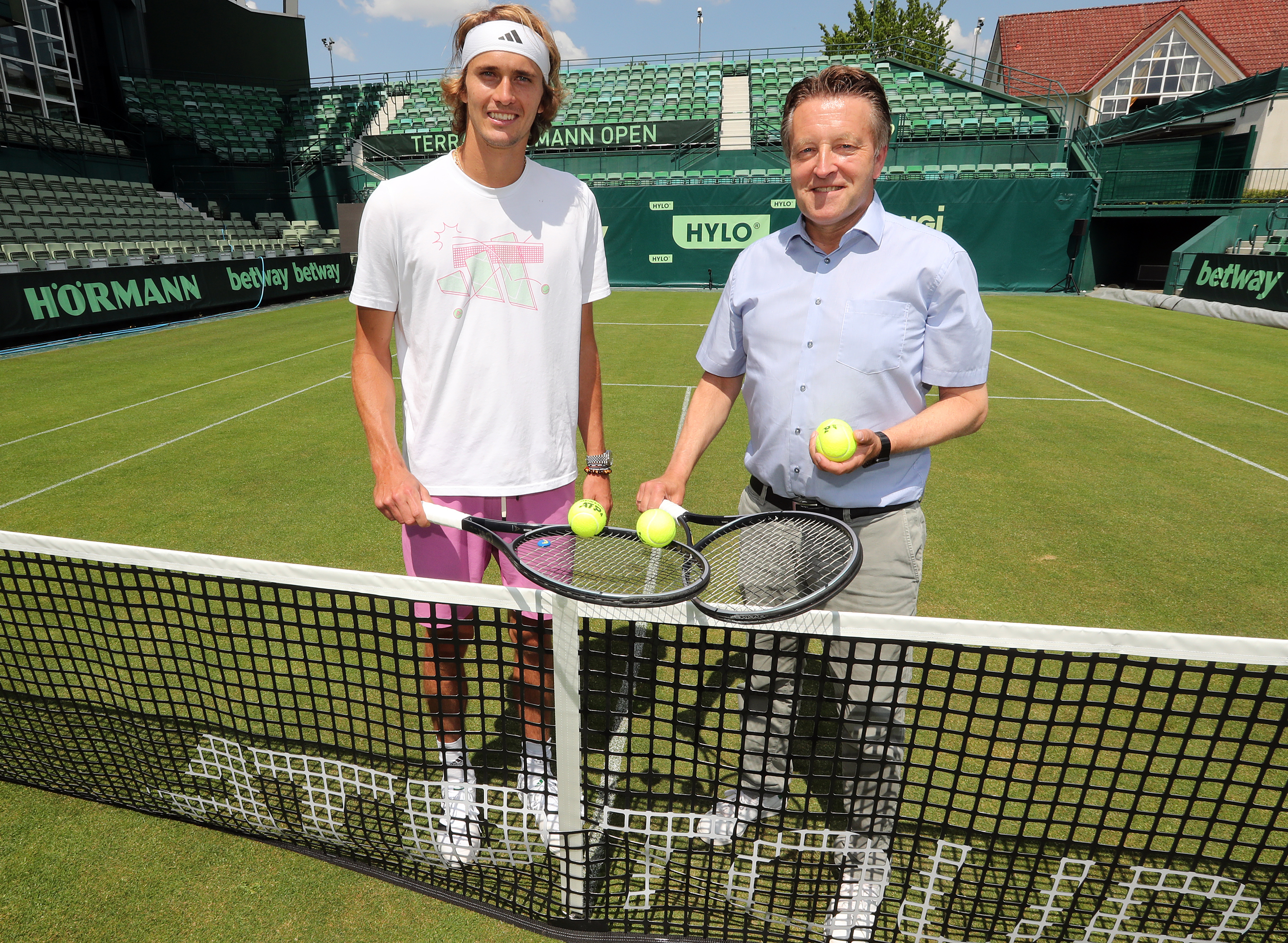 Turnierchef Weber begrüßte Olympiasieger Alexander Zverev am Donnerstag auf dem Tennis-Point Court