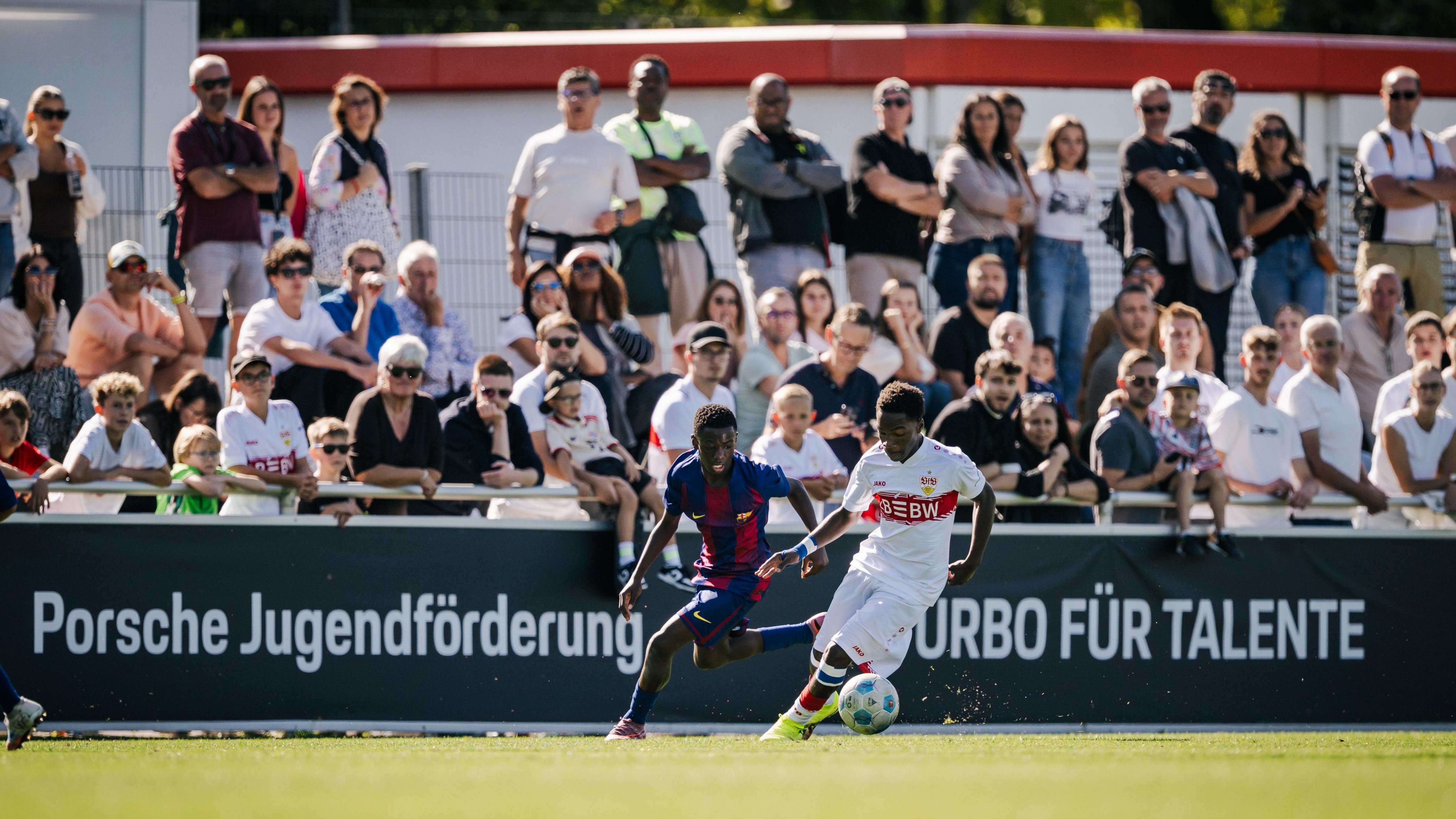 Porsche Fußball Cup 2025: Zweikampf zwischen VfB Stuttgart und FC Barcelona