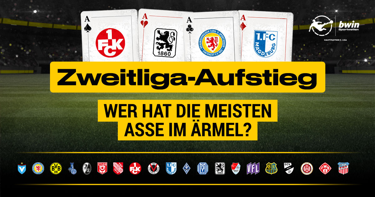 Weitere heiße Aufstiegskandidaten sind laut bwin Eintracht Braunschweig (Meister-Quote 8,00), Magdeburg (Quote 9,00) und Saarbrücken (Quote 11,00).