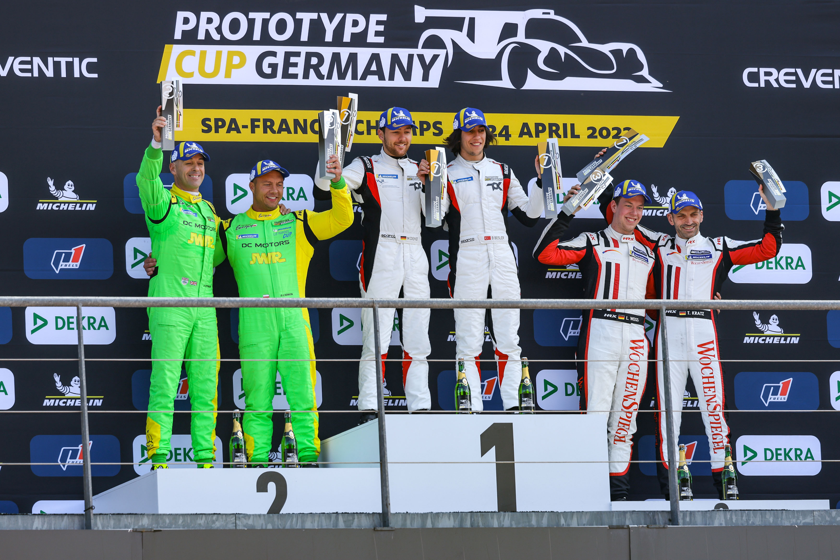 Marvin Dienst und Berkay Besler haben bei der Premiere des neuen Prototype Cup Germany von ADAC und dem niederländischen Promotor Creventic mit einem Doppelsieg ein perfektes Wochenende erlebt. Nach dem Triumph am Samstag in Spa in Belgien gewann das deutsch-türkische Duo im Ligier auch das Sonntagrennen. Jamie Winslow/Damian Ciosek aus dem Team Inter Europol Competition freuten sich über die zweite Position; auch sie bewegten einen Ligier. Rang drei ging an das Wochenspiegel Team Monschau, das einen Duqueine für Leonard Weiss und Torsten Kratz in die Ardennen brachte. "Zwei Siege am ersten Wochenende des Prototype Cup Germany sind ein perfekter Saisonstart für uns. Ich hoffe, es geht nun so weiter", gab der Türke Besler zu Protokoll.