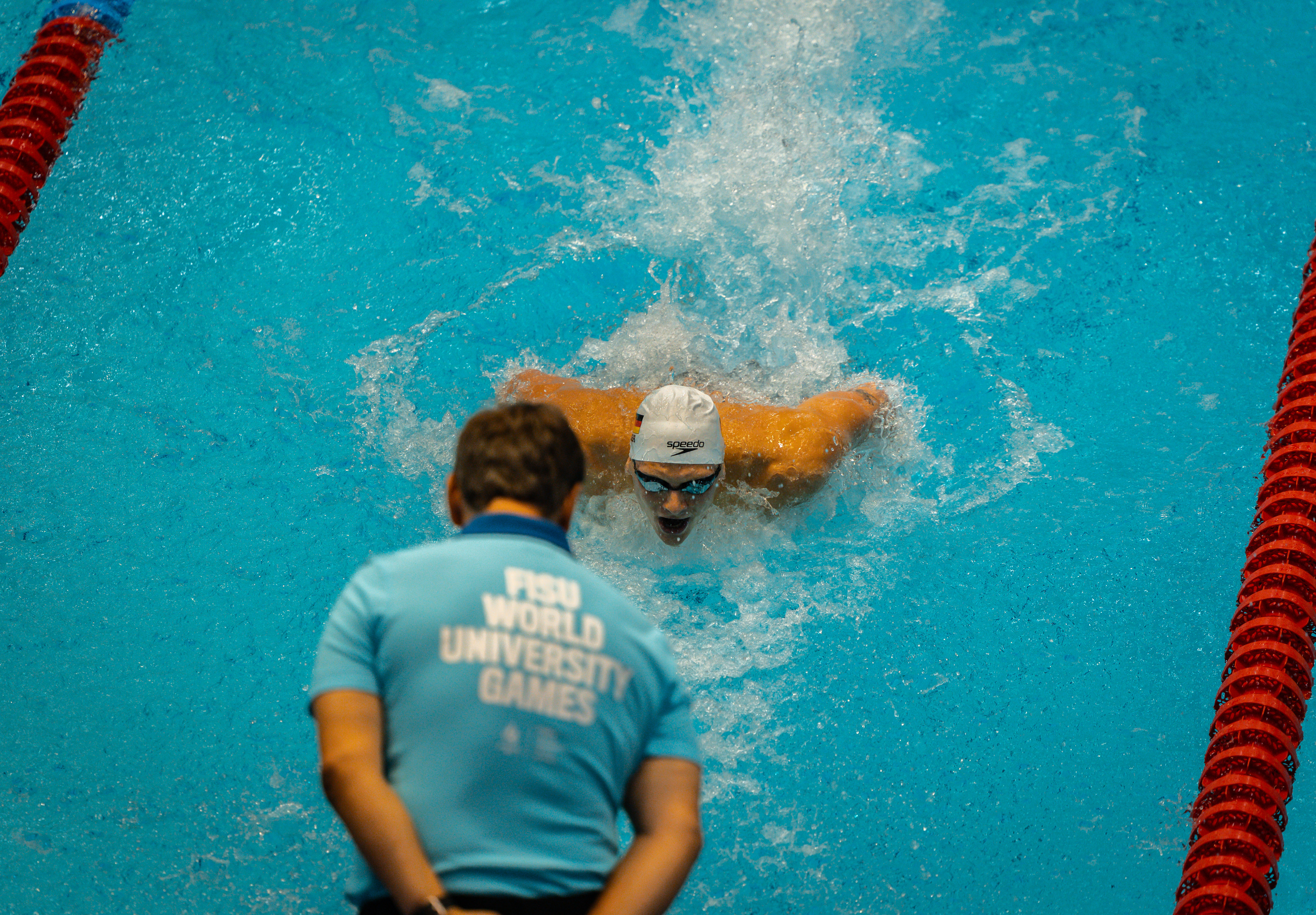 Für das deutsche Schwimmteam holte Björn Kammann (University of Tennessee, USA) über die 100 Meter Schmetterling am vorletzten Wettkampftag mit Silber die erste Medaille im Becken. Er zeigte sich nach dem Rennen überglücklich: „Ich freue mich riesig über meine erste internationale Silbermedaille im Einzel, zu der ich mit neuer Bestzeit geschwommen bin. Das Rennen war super eng und es hat richtig Spaß gemacht, hart zu fighten.“