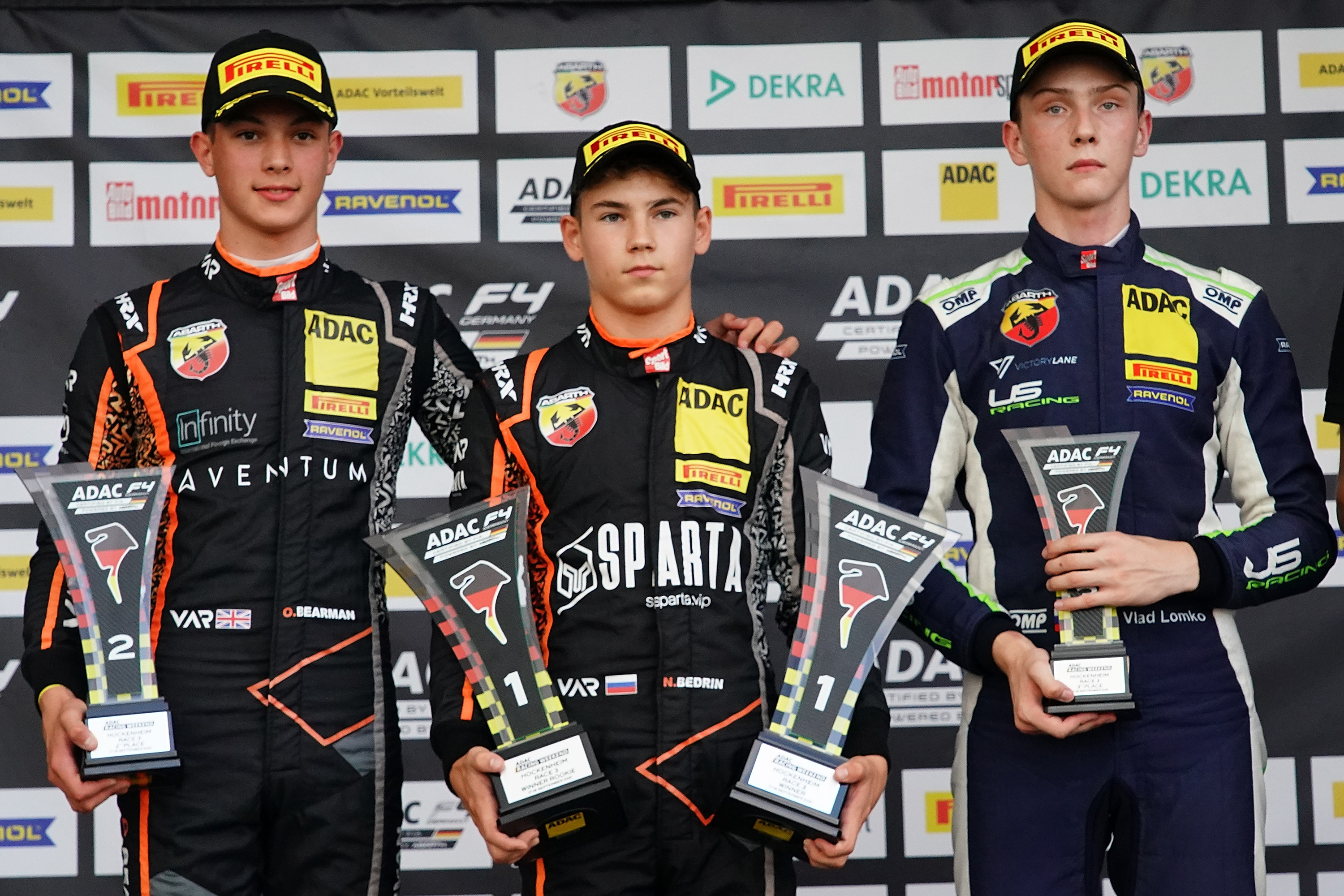 Die Saison-Premierensiege von US Racing-Pilot Tim Tramnitz (16) und Nikita Bedrin (15, Van Amersfoort Racing) aus Russland standen am Rennsonntag der ADAC Formel 4 auf dem Hockenheimring Baden-Württemberg im Mittelpunkt des Geschehens. Im ersten Lauf am späten Vormittag setzte sich zunächst der Hamburger Polesetter Tramnitz durch. Anschließend erklang zu Ehren des Siegers zum ersten Mal in dieser Saison die deutsche Nationalhymne. „Ich bin mega happy. Mein Start war nicht so gut, aber anschließend hat sich das Auto sehr gut angefühlt“, sagte ein glücklicher Tramnitz. Das US Racing-Team von Gerhard Ungar und dem ehemaligen Formel-1-Piloten Ralf Schumacher durfte sich zudem über zwei weitere Podestplatzierungen freuen. Hinter dem ADAC Stiftung Sport-Förderpiloten reihten sich die Teamkollegen Alex Dunne (15, Irland) und Luke Browning (19, Großbritannien) auf den Rängen zwei und drei ein.