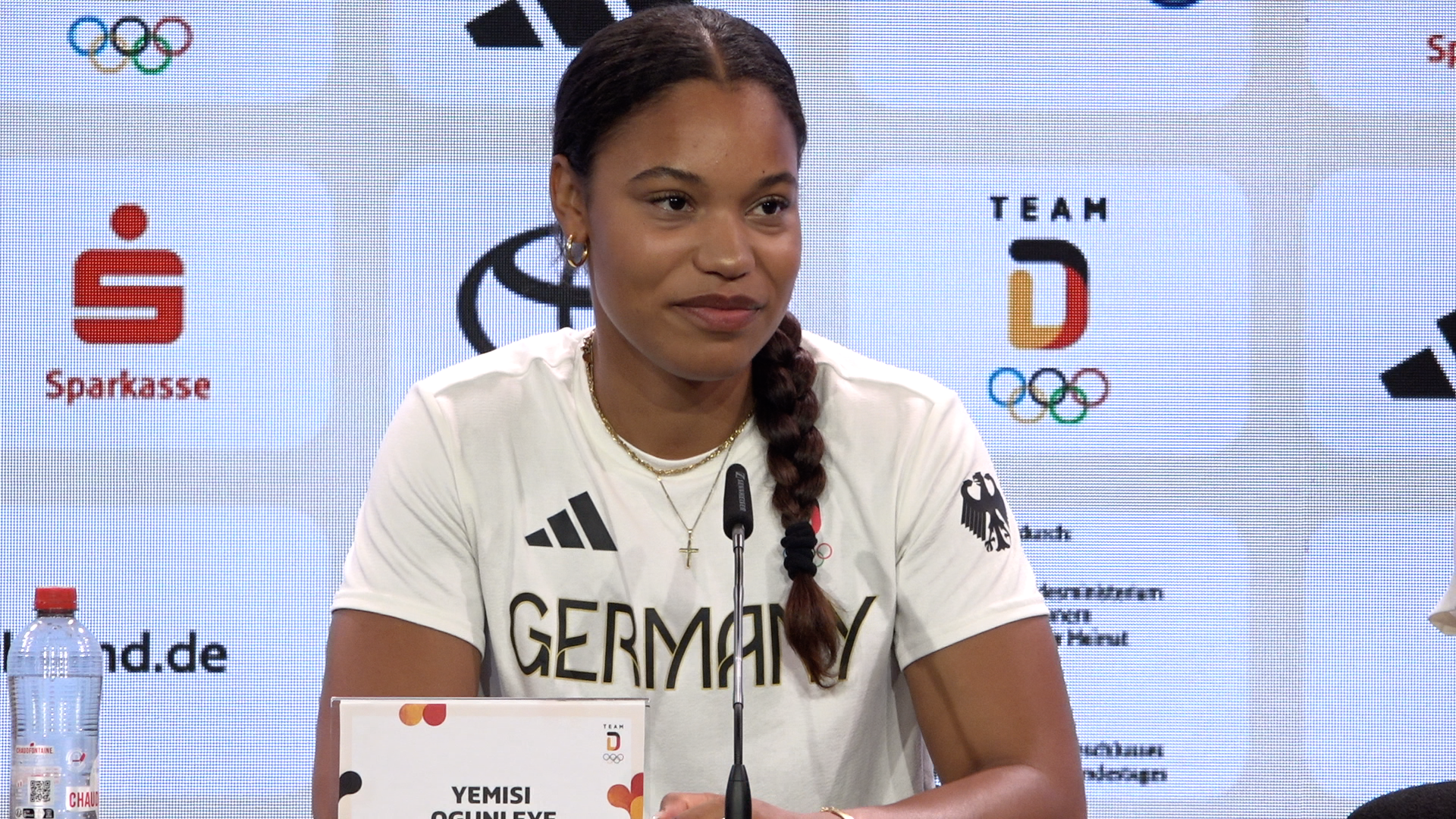 Zum Abschluss sprach Olympiasiegerin Yemisi Ogunleye über ihren Erfolg im Stade de France.