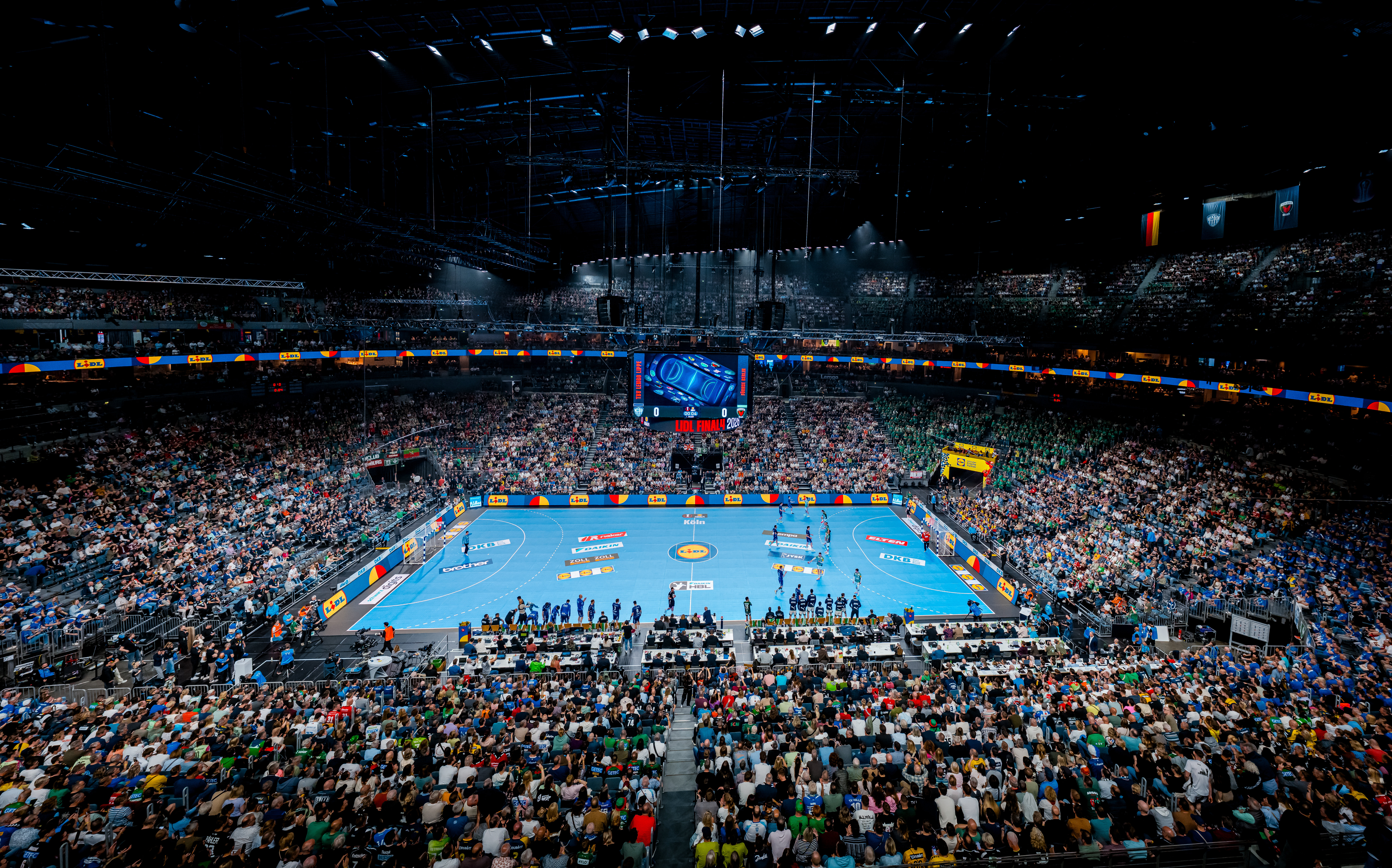Der ASB GlassFloor erfüllt als innovative Sportbodentechnologie alle spieltechnischen Anforderungen, einschließlich offizieller Akkreditierung durch den Handball-Weltverband IHF. Darüber hinaus sorgt die neueste Generation des Courts, der ASB LumiFlex S, für kürzere Auf- und Abbauzeiten sowie hohe Zuverlässigkeit und Sicherheit für hochklassige Sportveranstaltungen und Live-Events. Während am Mittwoch vor dem Lidl Final4 noch das Spiel 4 in den Eishockey-Playoffs zwischen den Kölner Haien und den Eisbären Berlin stattfand, wurde der mehr als 900 Quadratmeter große Boden am Donnerstag an nur einem Tag aufgebaut, verkabelt und abgenommen, sodass ab Freitag Proben und Training für das Handball-Highlight am Samstag und Sonntag stattfinden konnten. Bereits am folgenden Montag konnte daraufhin wieder Eishockey im Spiel 6 zwischen Köln und Berlin in der LANXESS Arena gespielt werden.
