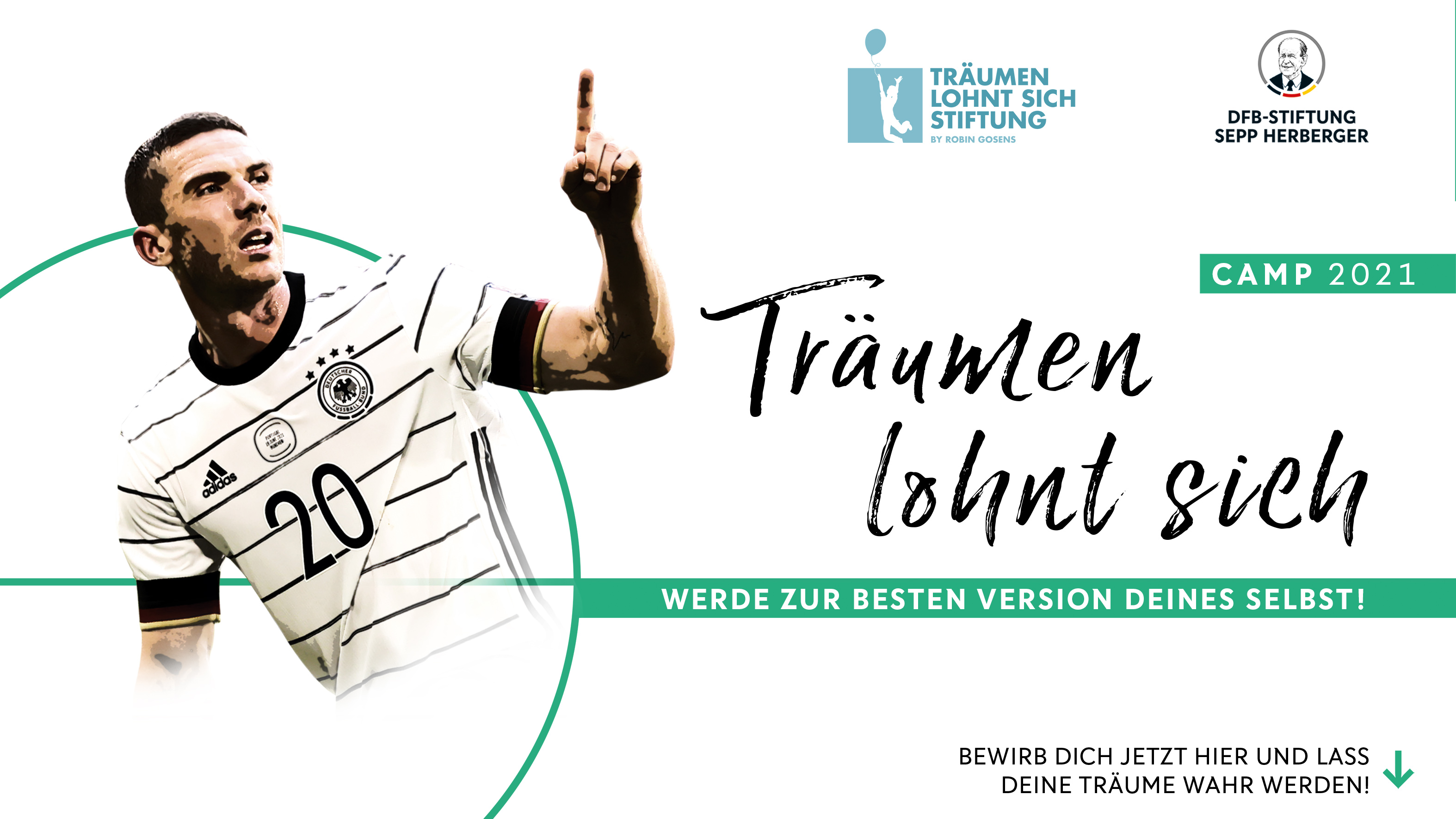 Wer sich bewerben möchte, findet auf der Instagram-Seite von Robin Gosens, den Webseiten traeumenlohntsich.de und sepp-herberger.de sowie auf dem Account der DFB-Stiftungen bei Facebook und Instagram alle weiteren Informationen. Die Kosten für die An- und Abreise, die Unterkunft und das Programm werden durch die Veranstalter übernommen. Jetzt anmelden und bis spätestens zum 24. Juli bewerben. Denn: Träumen lohnt sich!