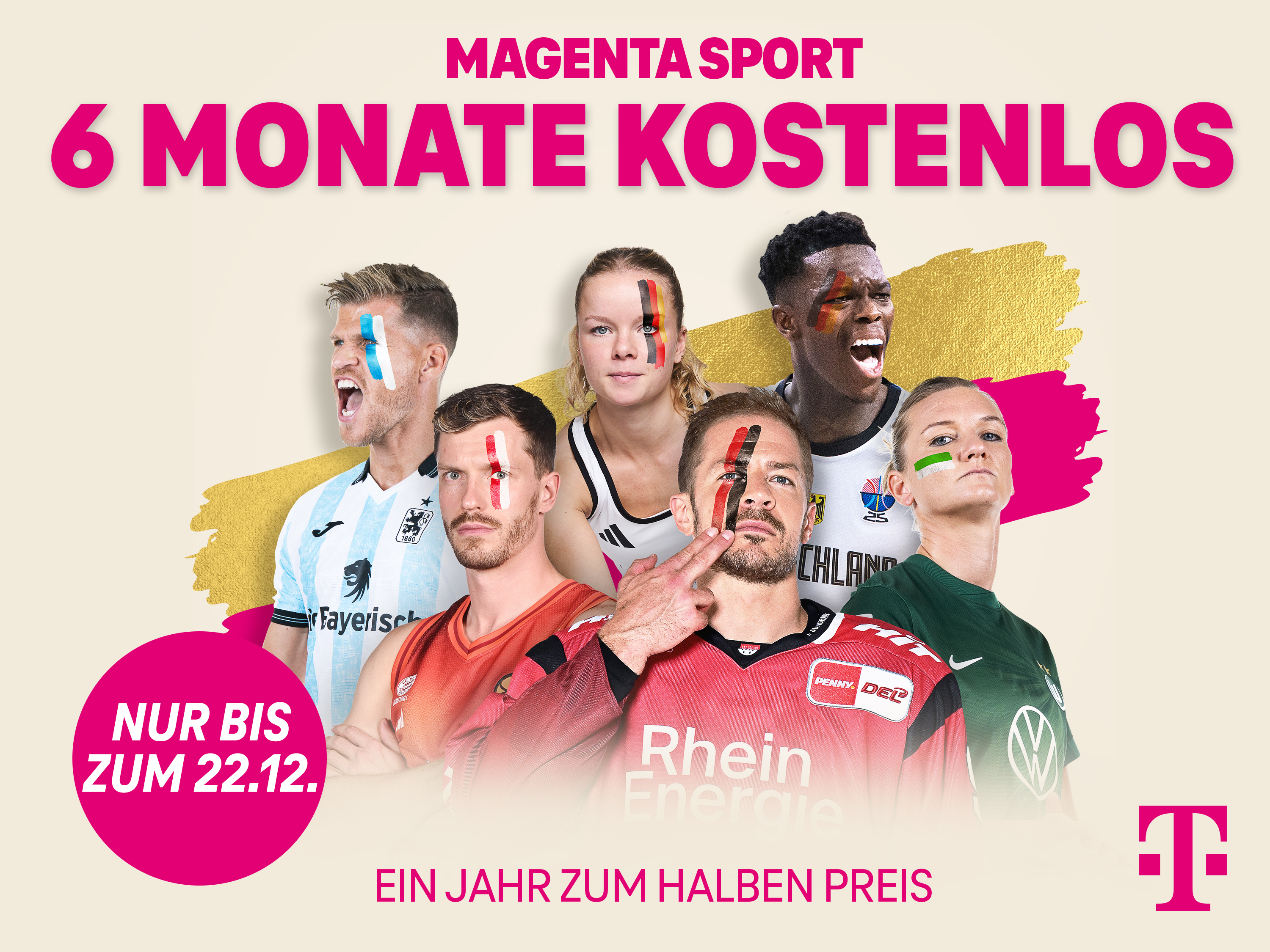 Im vorweihnachtlichen Countdown bietet MagentaSport eine 1a-Geschenk-Idee und vom 18. November 2025 bis 22. Dezember 2025 ein außergewöhnliches Aktions-Angebot. Sechs Monate für Neukunden kostenlos, 1 Jahr MagentaSport zum halben Preis! Und wer dann schnell zuschlägt, bekommt so viel hochklassigen Sport wie nirgendwo sonst. Über 300 Live-Events mit über 600 Live-Stunden allein von Ende November bis Ende Dezember, Top-Sport sowie die 3 Sommer-Märchen mit emotionalen Highlights an den Festtagen: die Rückkehr des Basketball- Welt- und Europameisters Deutschland in der WM-Quali, die Fußball-WM-Gruppenauslosung am 5. Dezember, ein außergewöhnliches Turnier großer FC Bayern-Legenden, die heiße Phase in der PENNY DEL-Hauptrunde, NBA-Helden in der EuroLeague auch über die Feiertage, die 3. Liga auf Torrekord-Jagd, die Frauenfußball-Bundesliga mit einer dichten Spitze. Alle Informationen zur Aktion gibt´s auch hier: www.telekom.de/sport/magenta-sport