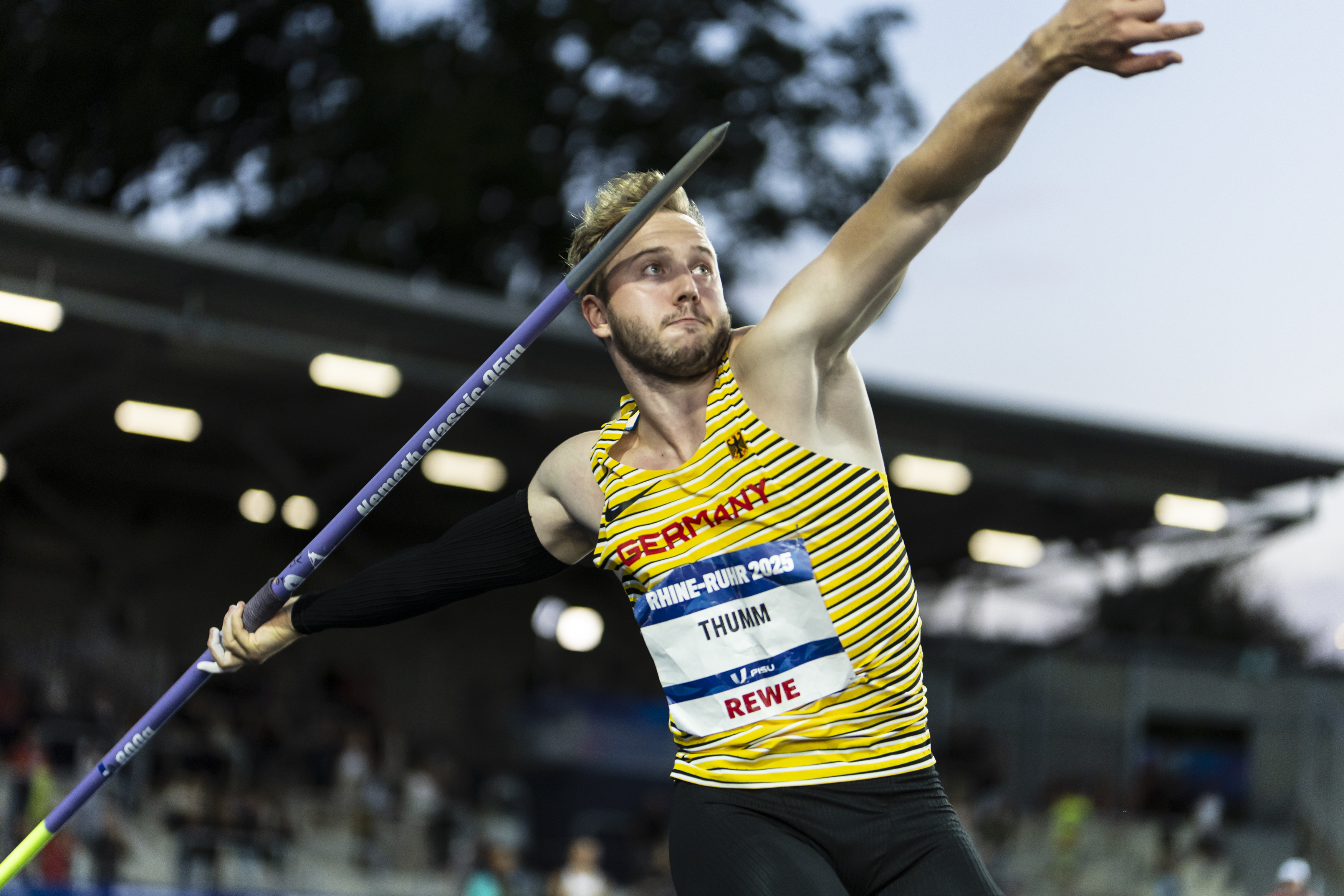 Im letzten Versuch wollte Nick Thumm (IU Internationale HS) nochmal einen raushauen: Mit 78,47 Metern warf der 20-Jährige zwar seine Tagesbestweite, sie reichte jedoch nicht aus, um den Schweizer Simon Wieland, der im Bochumer Lohrheidestadion seine Saisonbestweite ablieferte (79,33 Meter), vom obersten Treppchen zu verdrängen. Schon mit seinem zweiten Wurf des Abends setzte sich Thumm auf dem zweiten Rang hinter Wieland fest und verteidigte diese Position über den gesamten Wettkampf. Thumm hatte bereits bei der U23-Weltmeisterschaft in Bergen (Norwegen) am vergangenen Samstag die Silbermedaille gewonnen und wiederholte diese Leistung nun bei den FISU Games zum zweiten Mal innerhalb einer Woche. „Ich bin mit dem Ergebnis sehr zufrieden. Die letzten zwei Wochen waren sehr anstrengend, aber auch erfolgreich, und das macht mich sehr glücklich“, strahlte Thumm nach dem Wettkampf.