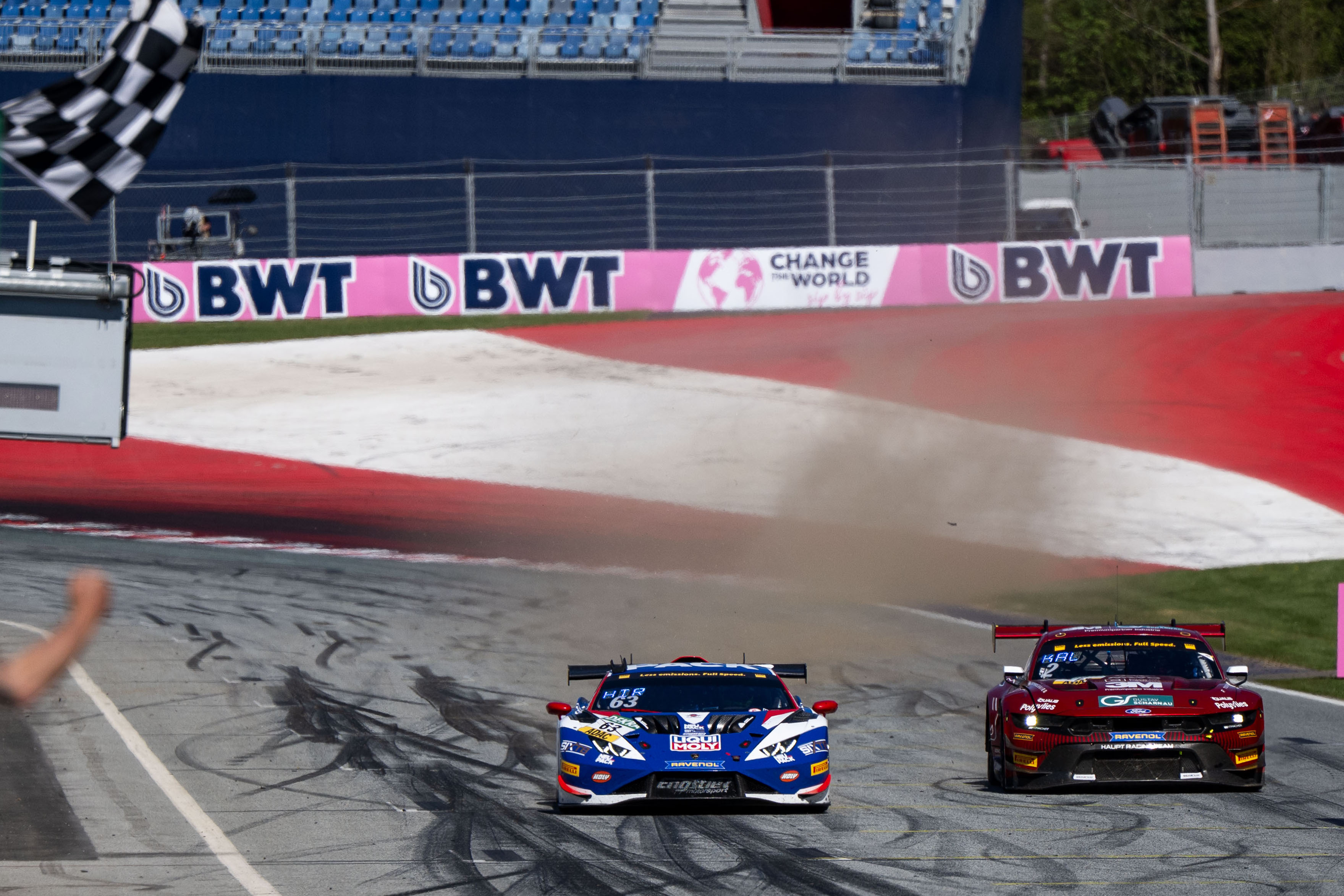 Nach der Übergabe von Blum auf Teamkollege Kalus schien es zunächst so, als könne sich der Ford vorne behaupten, obwohl Hirsiger, der von Zulauf übernommen hatte, immer in Schlagdistanz blieb. „Die Leistungsunterschiede zwischen den Autos machen das Überholen nicht einfacher. Im Mittelsektor ist der Lamborghini etwas stärker, in den anderen beiden der Ford“, erklärte Hirsiger. „Mir war klar, ich muss mein Auto richtig managen, um am Ende nochmal Druck aufzubauen. Das hat sehr gut funktioniert.“ Kalus hatte in Front seinen Vorsprung gehalten und schon etwas durchgeatmet, als sich das Blatt in der vorletzten Runde nochmals wendete. „Ich sah, dass er näherkam. Plötzlich war er direkt hinter mir und ich musste verteidigen. Ich hatte gehofft, mich nochmal freischwimmen zu können, aber er hat das sehr gut gemacht und in der letzten Kurve hatte ich keine Chance mehr.“ Kalus kam etwas zu weit nach außen und Hirsiger schlüpfte innen an ihm vorbei zum spektakulären Last-Minute-Sieg auf dem Red Bull Ring.