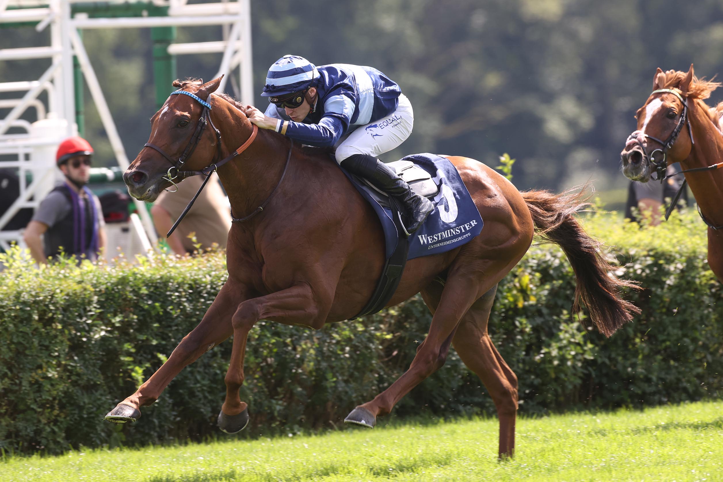 „Wir hatten ein tolles Rennen, in der Zielgeraden ging er sehr leicht nach vorne und hatte keine Probleme zu gewinnen“, so Siegjockey Alexis Pouchin, einer der jungen aufstrebenden Jockeys in Frankreichs Rennsport.