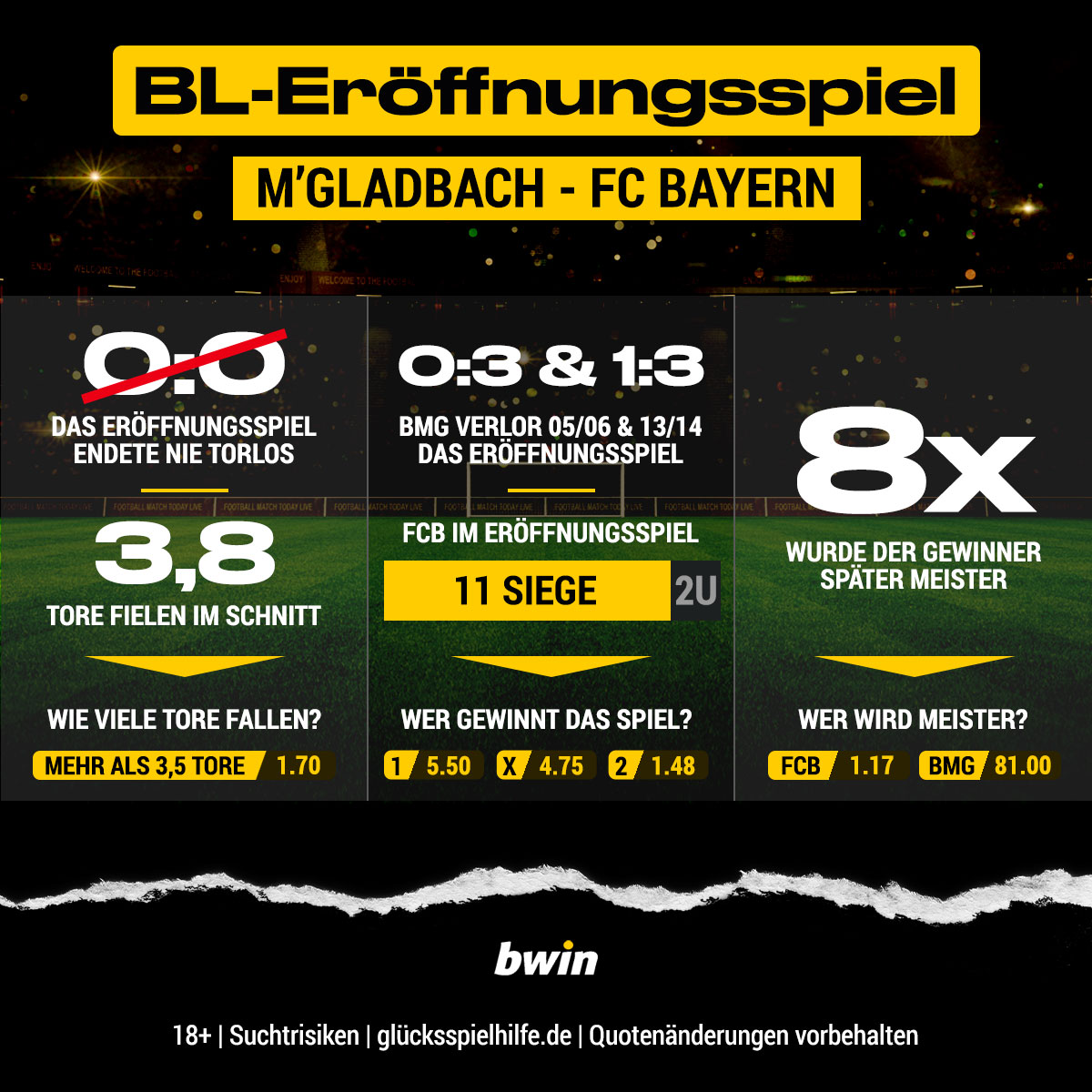 1. Spieltag: Quote 5,50 auf Gladbach-Sieg gegen FCB – BVB schlägt Frankfurt